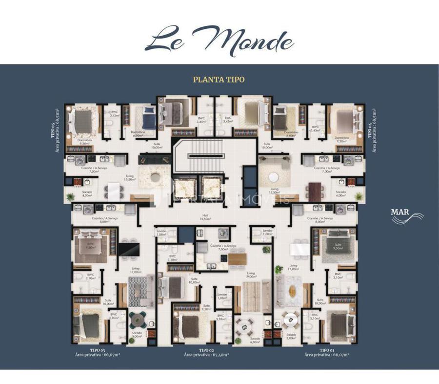 5 Apartamentos por andar