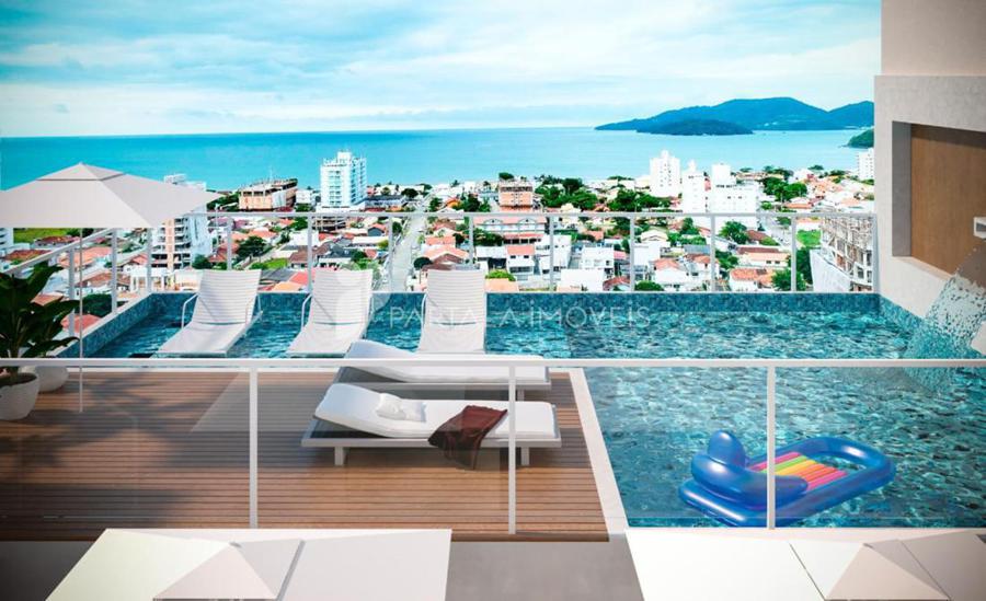 Piscina com prainha e deck