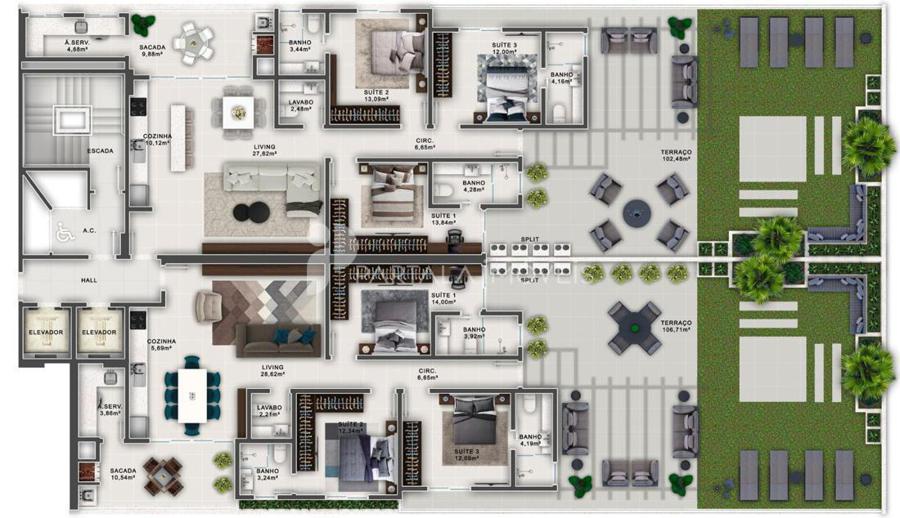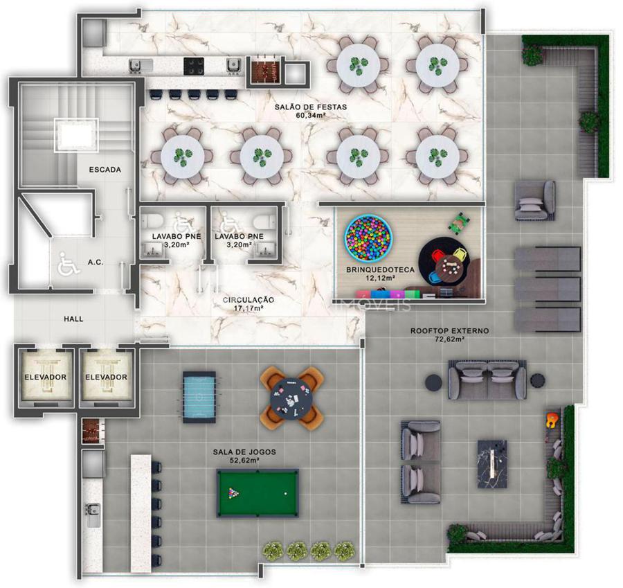 2 Áreas de lazer (5° pavimento e Rooftop)