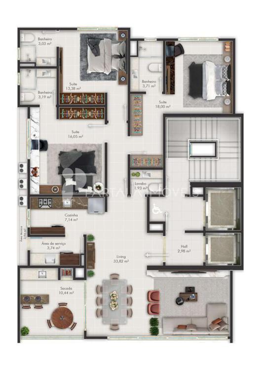 Área social totalmente mobiliada