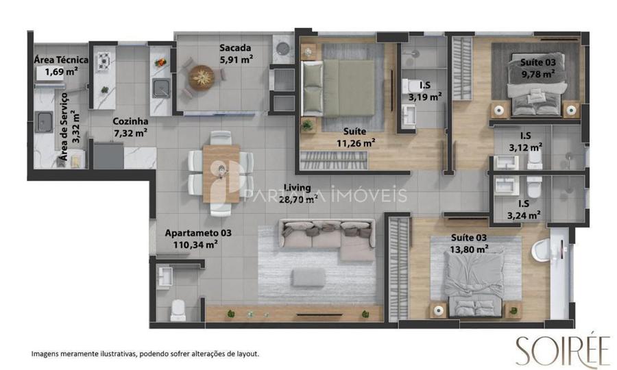 Tipo 3: 3 suítes | 110,34 m2