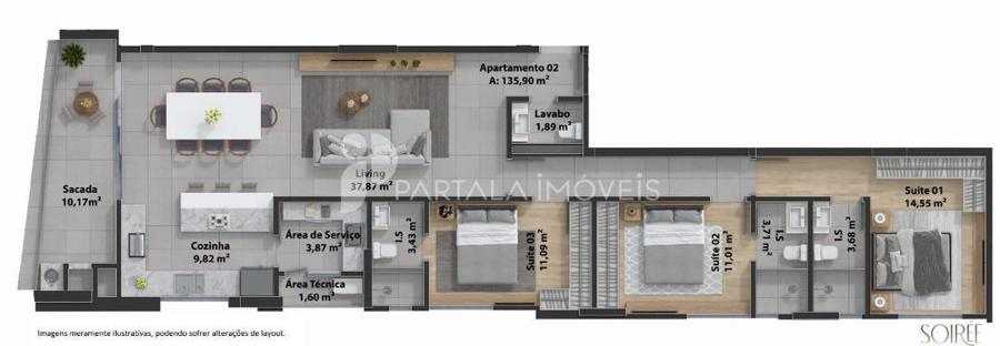 Tipo 2: 3 suítes | 135,90 m2