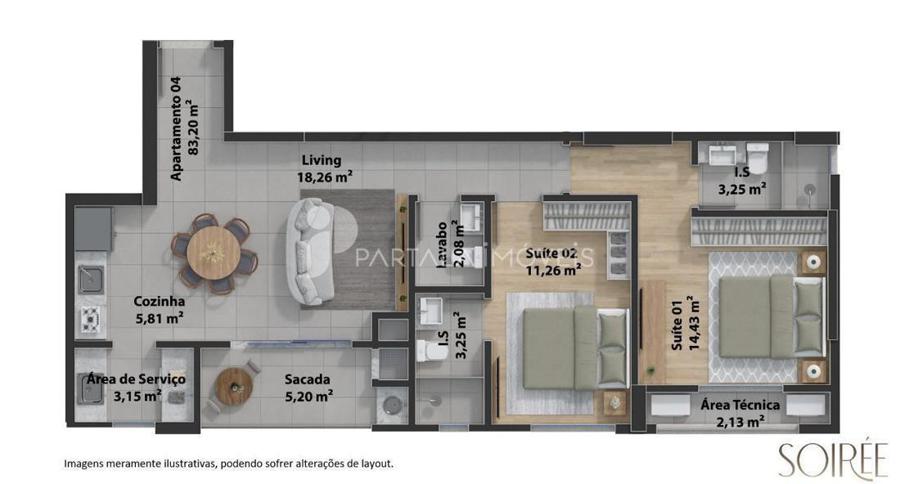 Tipo 4: 2 suítes | 83,20 m2