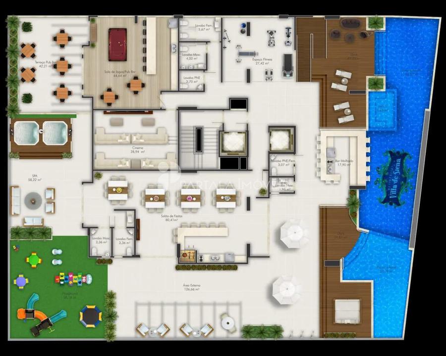 - Área de lazer com 790m²